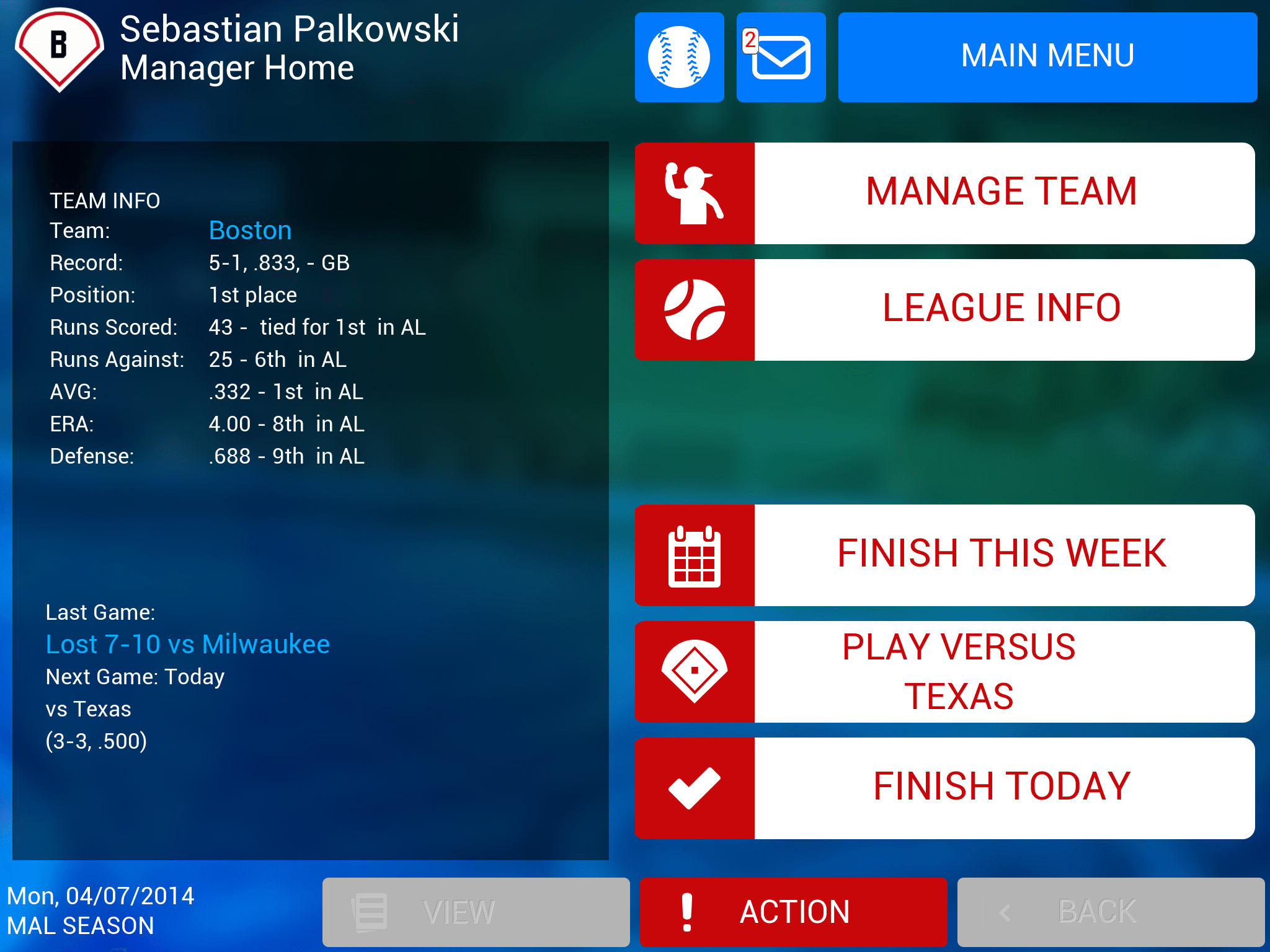 Manage your team, set lineups, depth charts, pitching staff and more!