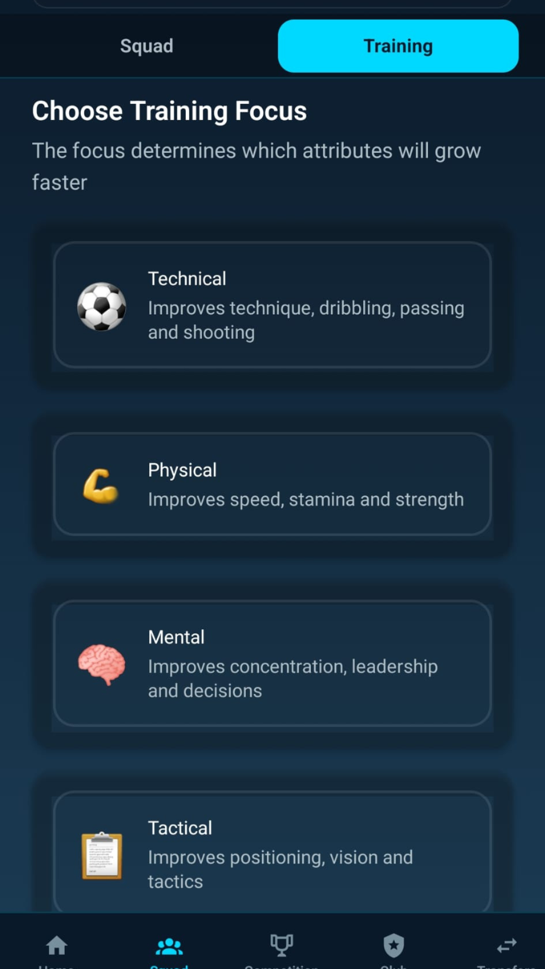 📋 Tactical Mastery Choose formations, tactics, and real-time decisions to outsmart opponents. Balance attack and defense for victory in league matches and full seasons.