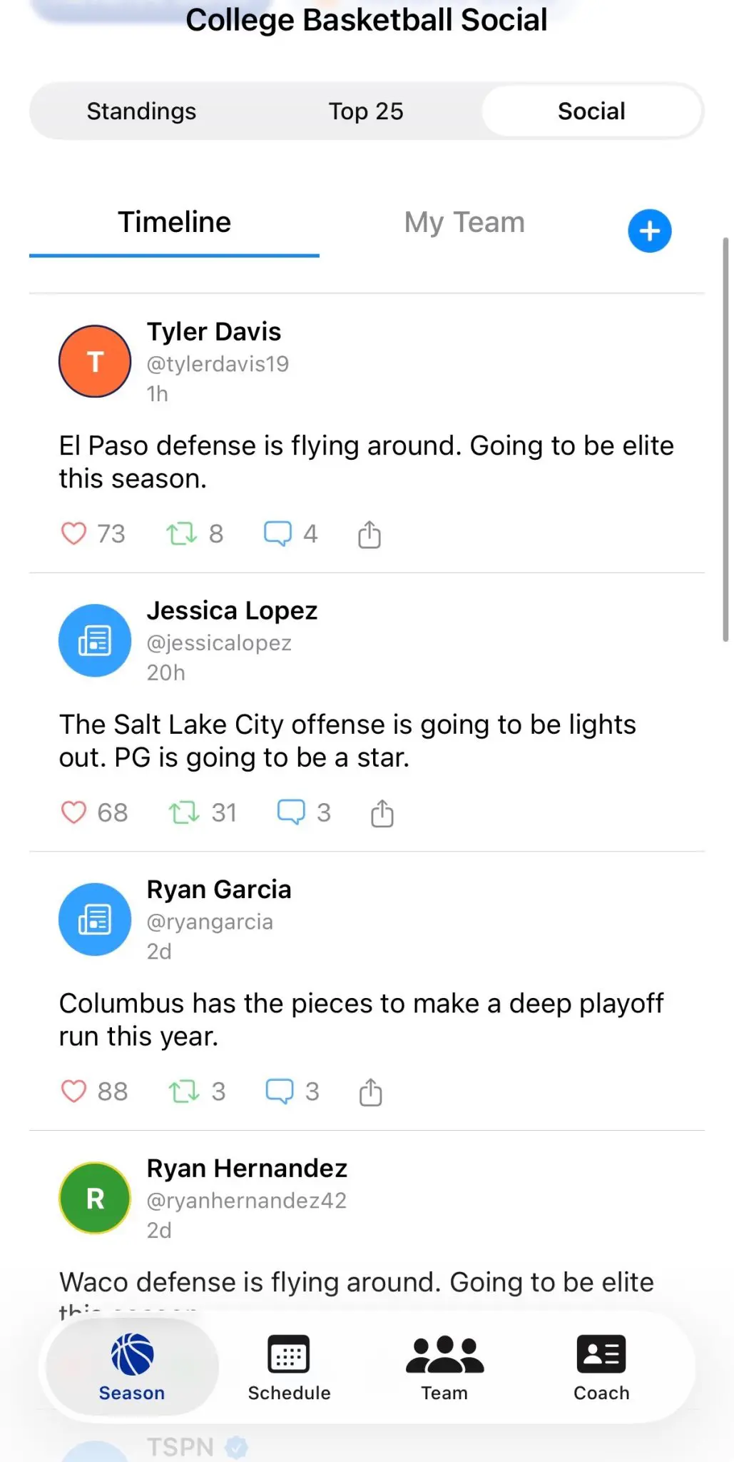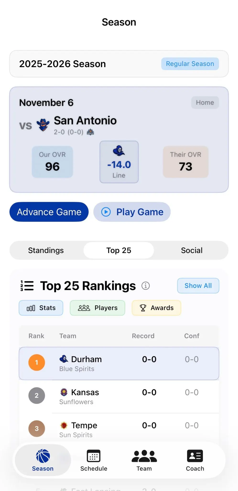SOCIAL MEDIA FEED: Follow the college basketball world through an in-game social feed reacting to all things in your world. Post as your coach to build hype and grow your program’s reputation.