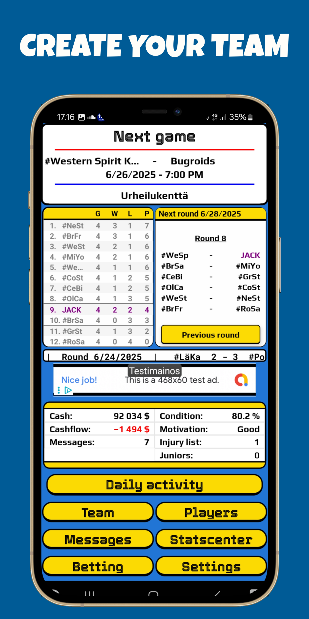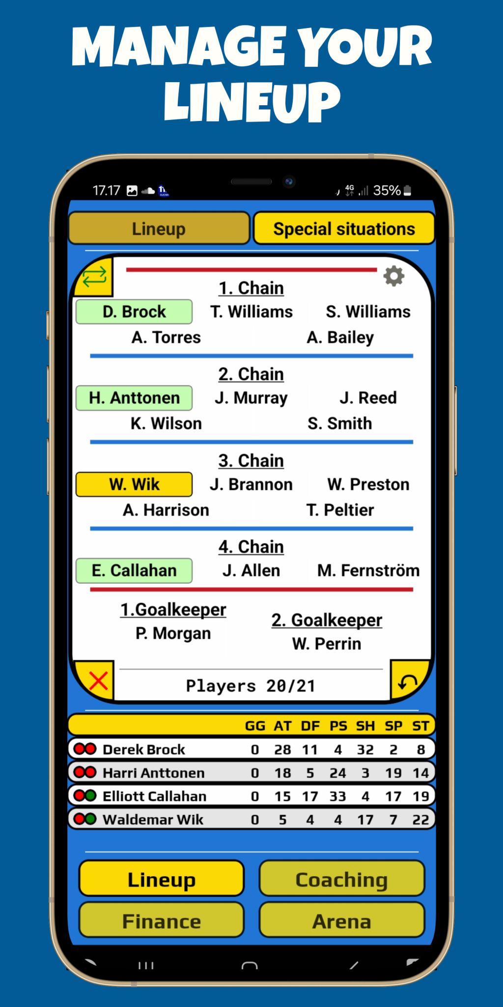● Define your players' training routines and develop their skills